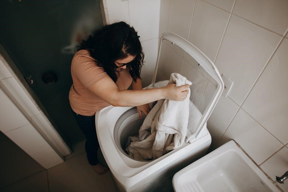 Keep children and pets away from the washing machine during operation. Do not overload the drum‚ as this can cause imbalance and potential damage. Avoid washing flammable materials. Refer to your user manual for specific safety warnings related to your model. Following these precautions ensures a safe and reliable washing experience‚ protecting both you and your appliance.